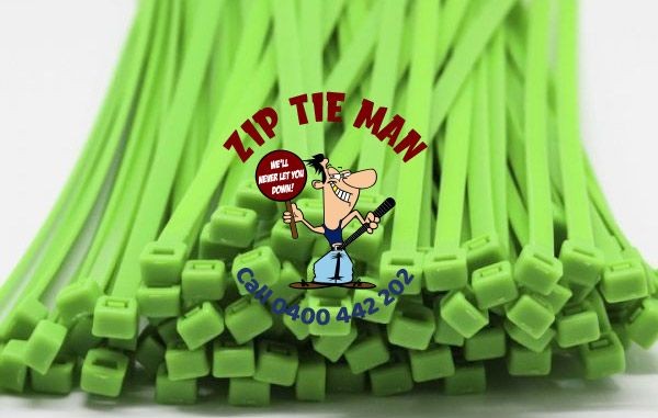 Zip Tie Man colour cable ties are now used in some of the largest hydraulic companies in Australia. Also our colour cable ties are now being used to certifying chains for crane companies. Zip Tie Man cable ties are manufactured from nylon66 and have a flammability rating of UL94 class V2 and each size has been strength tested to beat all standards. Our cable ties will exceed expectations.